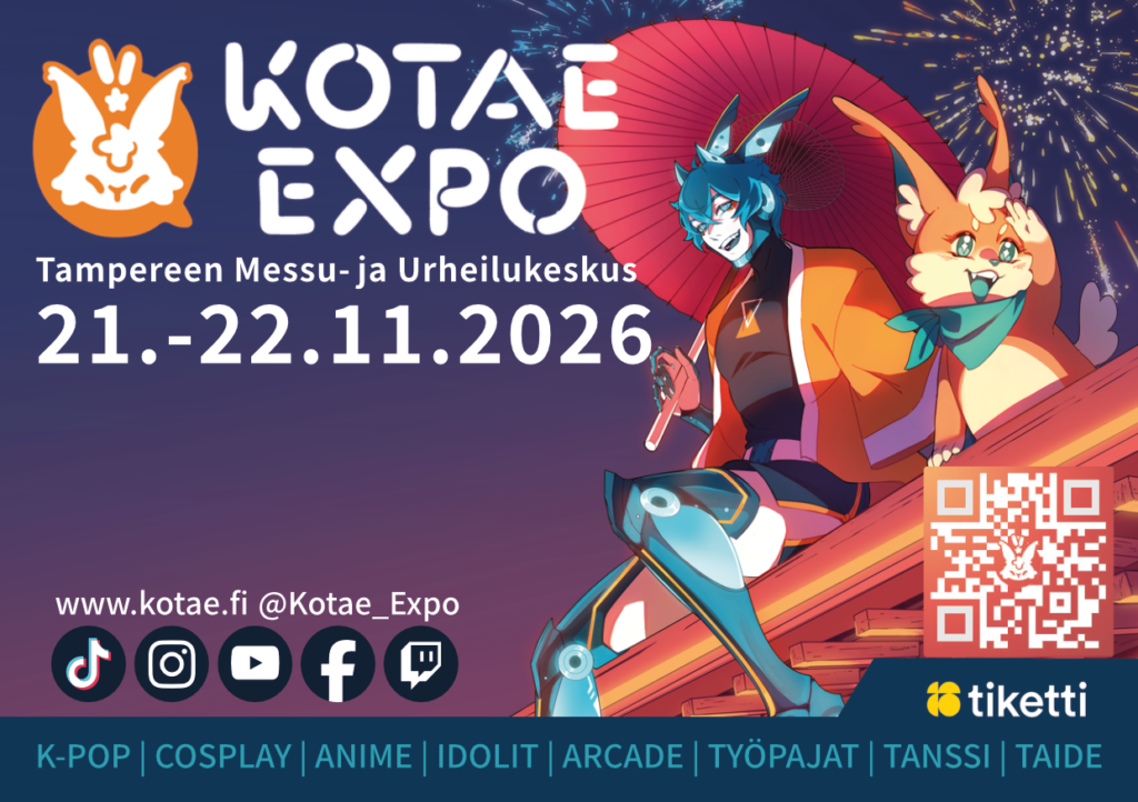 Voit auttaa Kotae Expoa saamaan näkyvyyttä levittämällä sanaa tapahtumasta tulostamalla tai välittämällä eteenpäin tapahtuman virallista julistetta. Sopivia paikkoja voivat olla esimerkiksi koulut, nuorisotilat, kirjastot sekä muut vastaavat julkiset paikat, jotka tavoittavat niin lapsia, nuoria, perheitä kuin aikuisiakin.